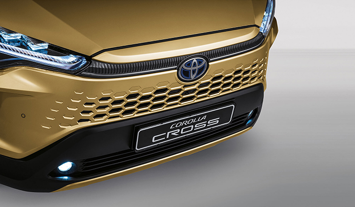 The Toyota Corolla Cross embodies Toyota's bold design with sculpted contours, dynamic lines, and a reimagined front fascia featuring a prominent grille and LED lighting. Its streamlined silhouette design based on TNGA, enhances aerodynamics while exuding modern sophistication, and every detail reflects Toyota's commitment to innovation and quality, making it a standout crossover for both urban and open road adventures.