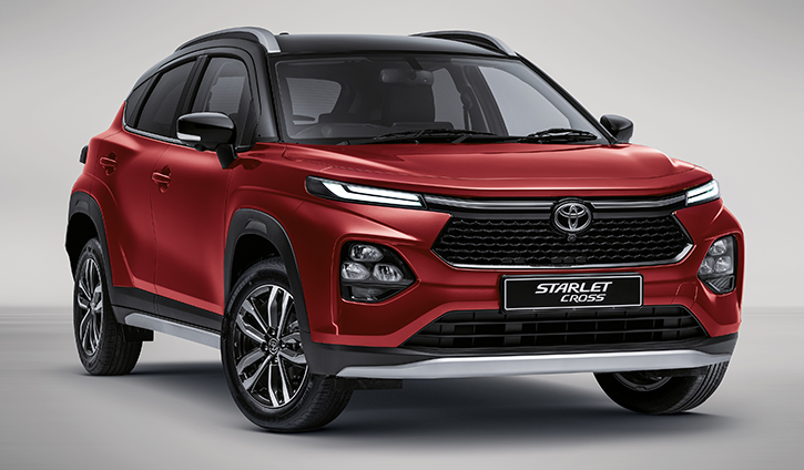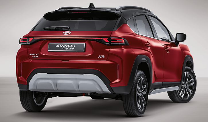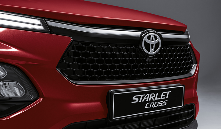 The Toyota Starlet Cross is designed to turn heads and boost your confidence. It blends crossover functionality with coupé elegance, offering SUV practicality with sophisticated style. Its bold front features a distinctive black honeycomb grille and sharp LED headlamps. As the most affordable small crossover, the Starlet Cross strengthens Toyota's presence in the compact car market.
