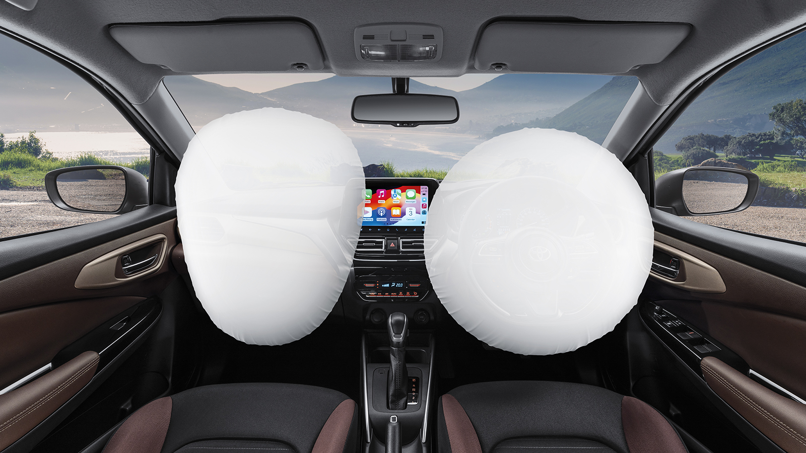The Toyota Starlet Cross offers a practical and well-equipped cabin designed for everyday comfort. Its touchscreen multimedia system with Apple CarPlay and Android Auto ensures seamless connectivity, while four speakers and two tweeters deliver crisp audio. The manual-adjust front seats and rear 60/40 split-folding configuration (345L boot capacity) maximize versatility. Thoughtful touches include auto air conditioning, power windows, and a leather-wrapped steering wheel, while the multi-information display keeps drivers informed. With dual front airbags, side airbags, and ISOFIX anchors, safety is prioritized, making every journey both convenient and secure.
