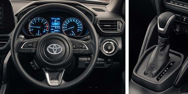 The Toyota Urban Cruiser combines practicality and comfort with a well-appointed cabin featuring fabric-trimmed seats, a leather-wrapped steering wheel, and a 60:40 split-folding rear seat for flexible cargo configurations. The 7-inch touchscreen infotainment system with Apple CarPlay and Android Auto ensures seamless connectivity, while digital automatic air conditioning and front/rear power windows enhance passenger comfort. Thoughtful touches include chromatic accents on door handles, TFT multi-information display, and standard cruise control, all complemented by LED-lit footwells for added ambiance. With dual front, side, and curtain airbags, ISOFIX anchors, and a reverse camera, safety remains a priority in this versatile urban SUV.