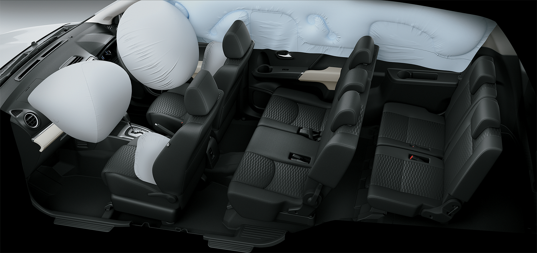 For maximum safety, the RUSH is equipped with six airbags combined with an impact absorbing body structure; VSC, ABS and HAC are also included as a standard feature. Driving in the RUSH is enjoyable with a high eye point, the road becomes more visible and safer.